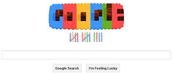 Google, on Thursday (27-09-2012), turns 14 and celebrates its birthday with a fascinating animated doodle. The search engine giant has featured a chocolate cake as its birthday-theme doodle with 14 candles on it. The letters of Google’s logo can be seen on cake.