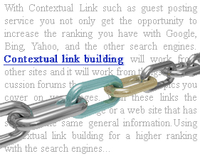 With Contextual Link such as guest posting service you not only get the opportunity to increase the ranking you have with Google, Bing, Yahoo, and the other search engines, you have the chance to send people who are already interested in the context of your pages to them. With these links the person is viewing a page or a web site that has some of the same general information that you have so they are interested in this information. They see the link to your web site where they are supposed to be able to either get more information on the subject or where they are supposed to be able to make a purchase of something they have been researching. That is a winning combination because all you need is relevant material, the person browsing is already hooked.